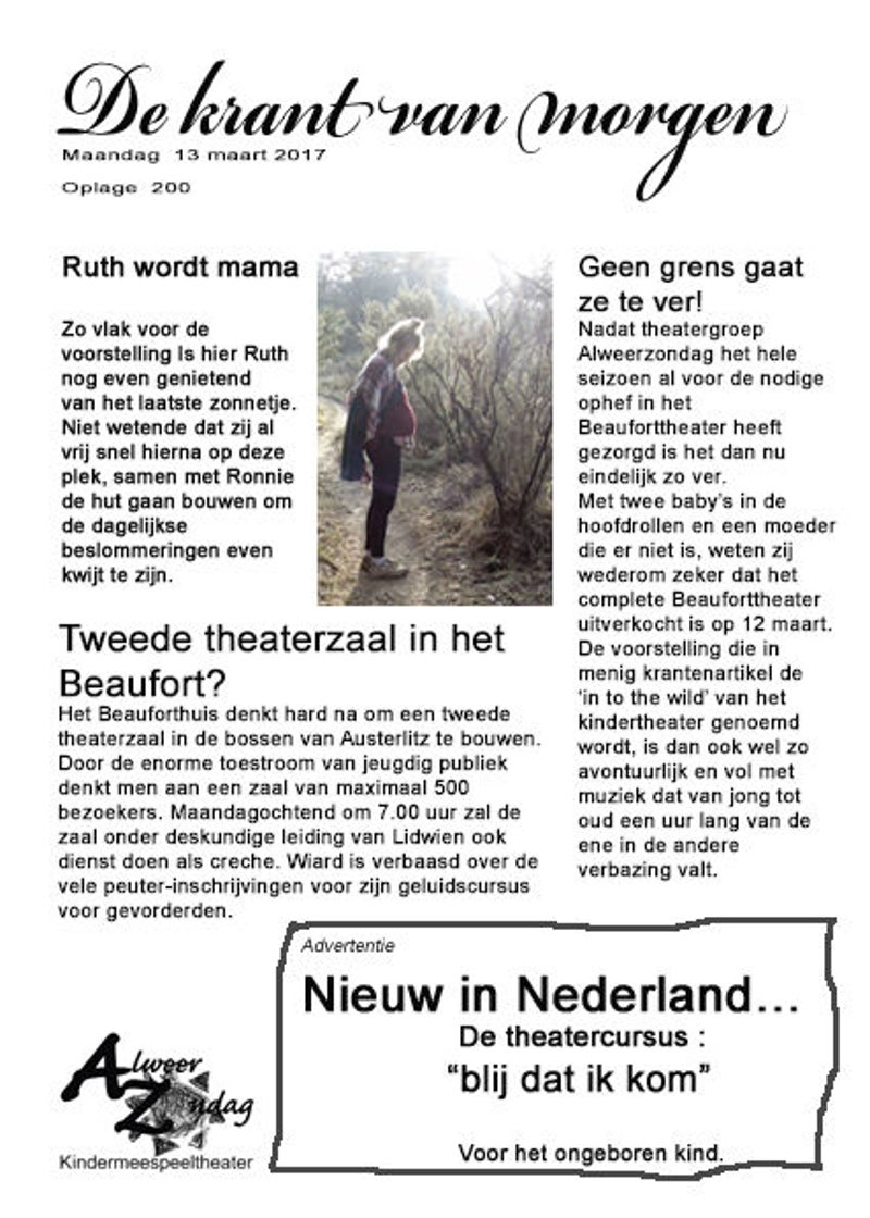 Ruth neemt even een pauze en Renée Driessen blijft in ieder geval tot januari, samen met mij, de voorstellingen in het Beauforthuis spelen.